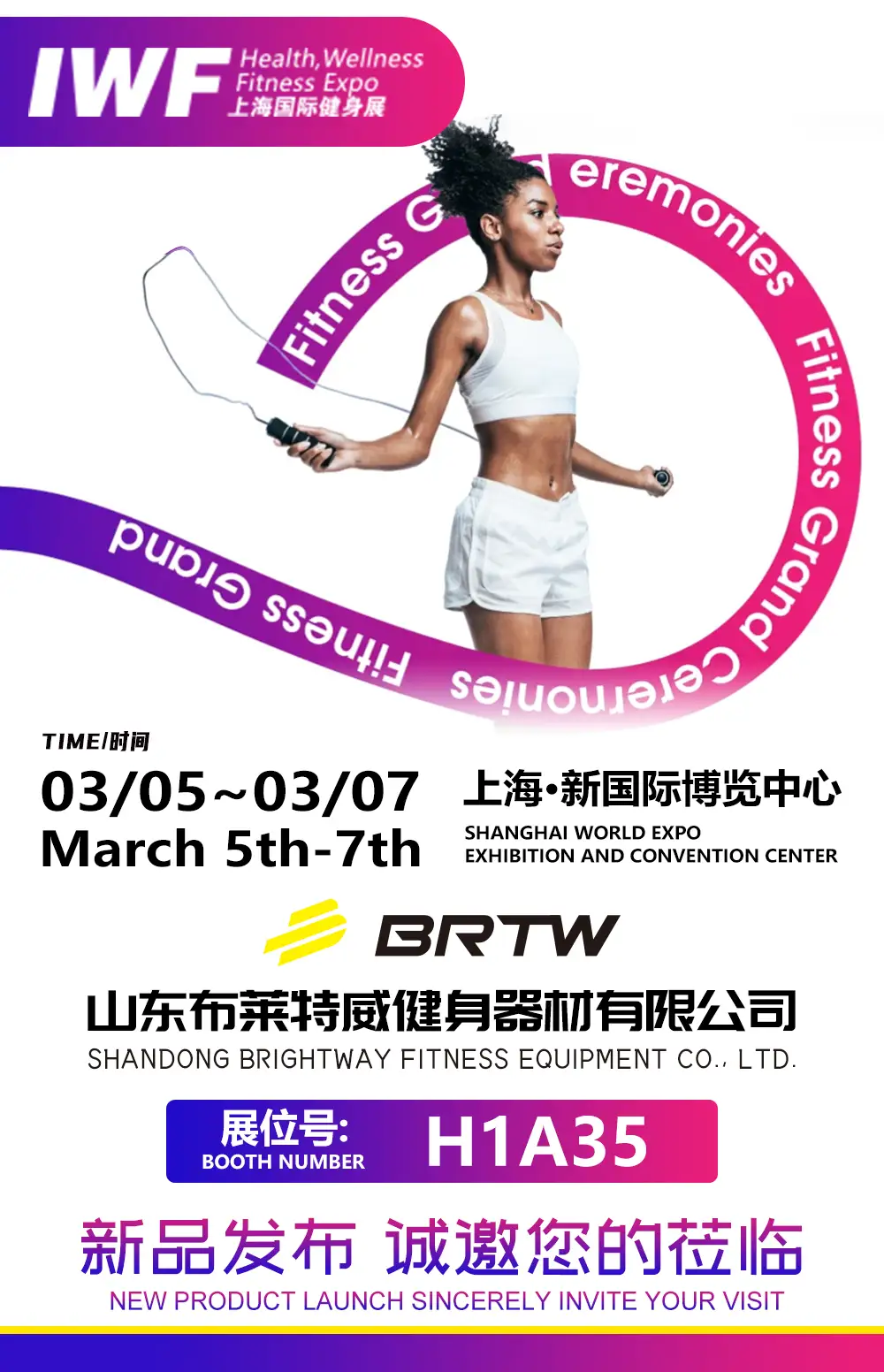 阳春三月,万象更新!伟德国际健身器材有限公司诚挚邀请您于2025年3月5-7日 莅临上海世博展览馆举办的IWF2025上海国际健身展(伟德国际健身器材展位号:H1A35)。伟德国际将携全新设计产品矩阵重磅亮相,与您共探健身行业新趋势!